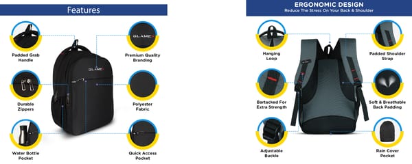 Additional Feature | Side Pocket for Water Bottle | Additional Feature | Ergonomic Design |