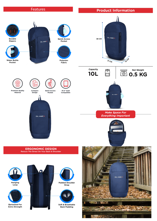 Glamex Pikpak 12L Mini Hiking Backpack for Outdoor Use (Navy Blue)